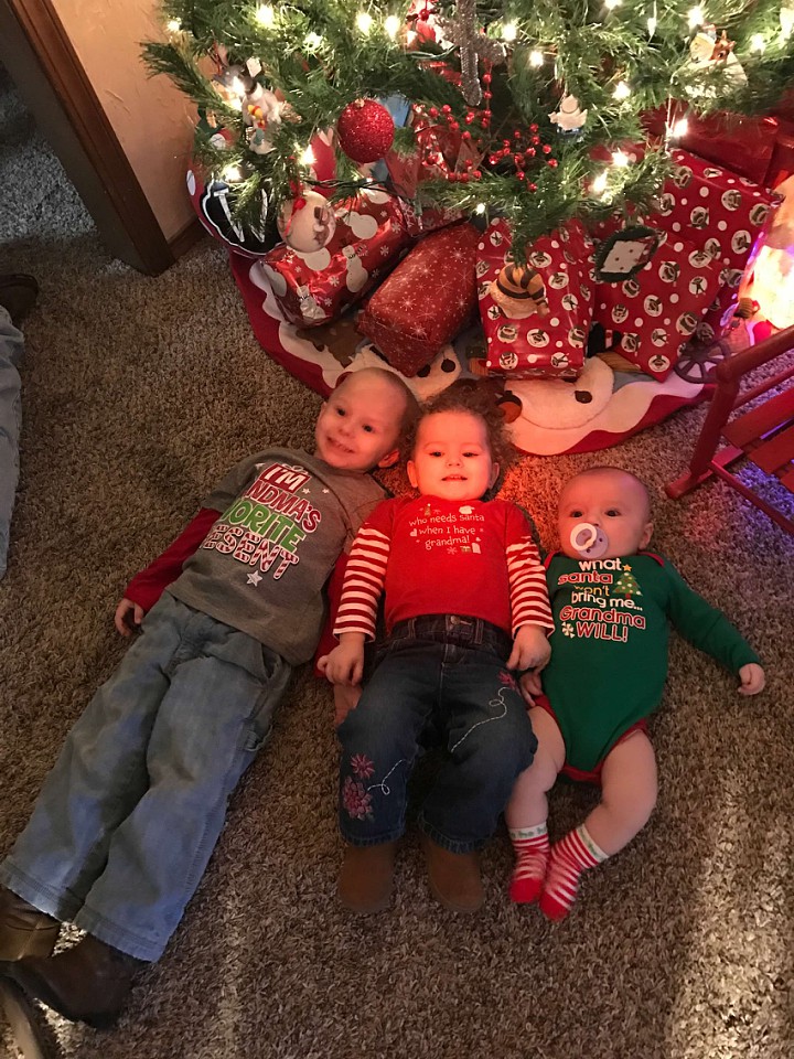 Tucker rolled over for the first time on December 3rd. He got bronchitis the week of Christmas break. He was sick most of Christmas break. We started some solid food. The first was sweet potatoes because those were Aubree's favorite. We celebrated Tucker's first Christmas with lots of family. Tucker had his first visit from Santa.